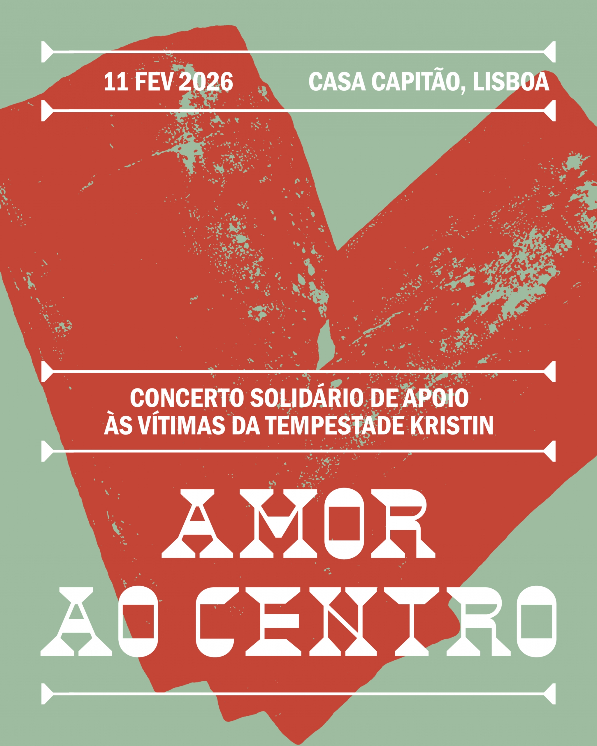 No rescaldo da tempestade Kristin que deixou um rasto de destruição no distrito de Leiria, vários artistas juntaram-se para o concerto solidário “Amor ao Centro”, no dia 11 de fevereiro na Casa Capitão, em Lisboa, cujo valor dos bilhetes reverte na totalidade para associações locais.