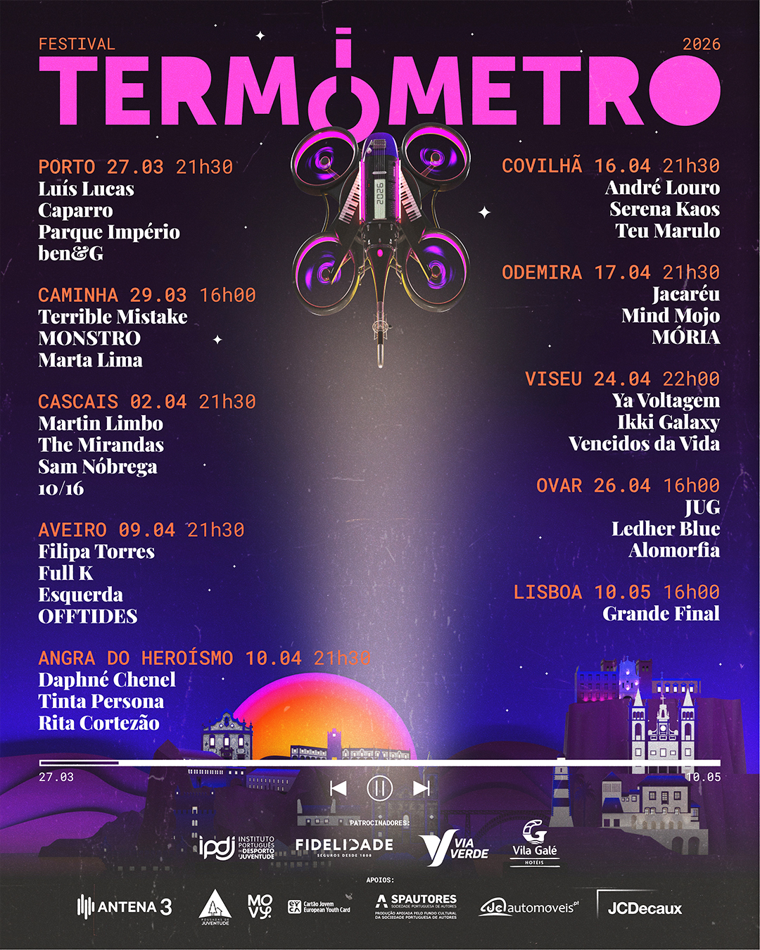 Em 2026, o Termómetro arranca a 27 março e termina a 10 de maio, pelas 16h, com a atuação de três finalistas e artistas convidados e o anúncio dos vencedores no LAV – Lisboa ao Vivo. Se quiser mesmo estar lá quando se descobrir a nova grande revelação da música do País, saiba que já pode comprar os bilhetes para a final.